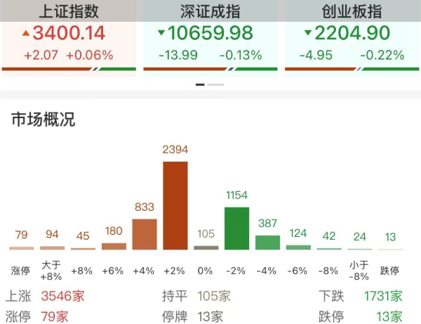 市场情绪,今日盘面虽然没有明显的热点,但窄幅震荡之下还是如期站上了3400点,个股涨多跌少,全市场超3500只个股上涨;今日共79股涨停,连板股总数11只,35股封板未遂,封板率为65%(不含ST股、退市股)。焦点股方面,昨6连板实益达跌停,算力板块电光科技6连板,AI眼镜概念股国星光电7天5板、雷柏科技3连板。情绪面在站上3400点后应该会有所回暖。