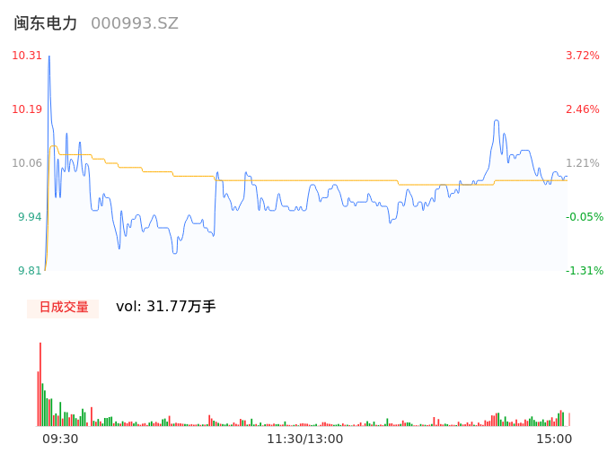 04月18日,闽东电力收报10.03,股价涨幅0.91%,成交金额3.19亿元,换手率7.24%。