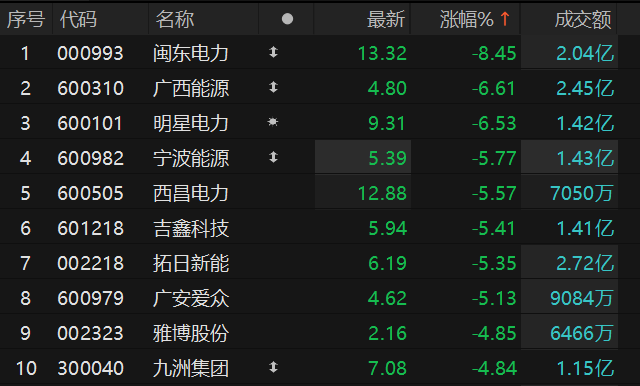 绿电概念股调整 闽东电力盘中触及跌停