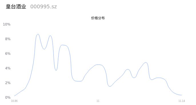然后我们来看下当日成交的价格分布。将今天股票的最低价与最高价之差形成的价格区间进行切片,并画直方图进行分析,观察成交量在价格区间的分布情况。可以发现,当日的成交分布呈现左偏峰分布,这说明,该股票大部分成交集中在中位数以下,说明交易重心下降,近期可能会存在短线下跌风险。