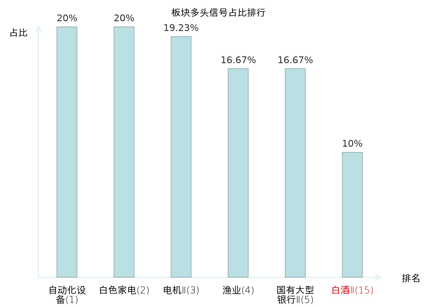 全市场所有行业板块中主力多头信号占比排名中,自动化设备板块位居第一。渔业板块名次提升最快,较昨日上升118位。