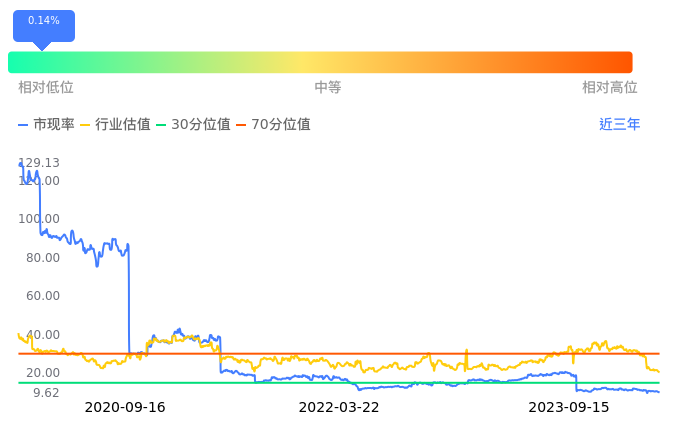 2023年09月15日,新大陆下跌2.24%收于18.35,今日成交金额1.84亿元。下文将从市盈率PETTM、市净率PB、市现率3个角度去分析公司估值情况。