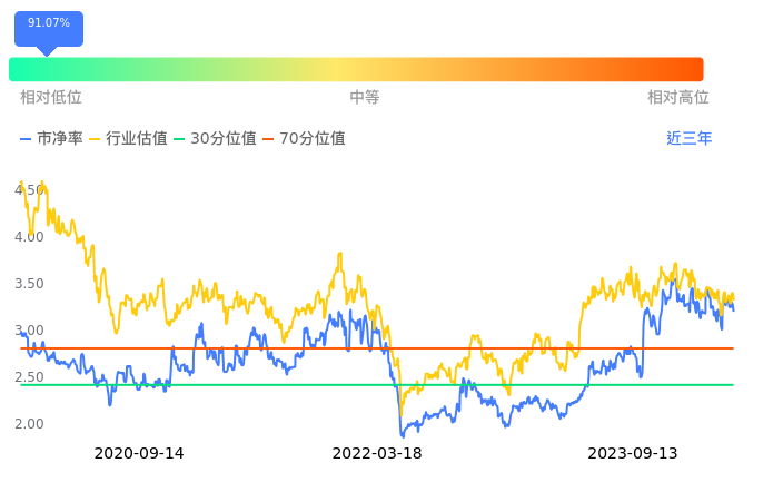 2023年09月14日,新大陆下跌1.68%收于18.77,今日成交金额1.66亿元。下文将从市盈率PETTM、市净率PB、市现率3个角度去分析公司估值情况。