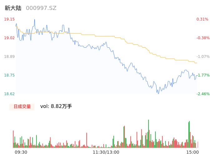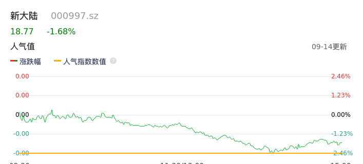 09月14日,新大陆收报18.77,股价涨幅-1.68%,成交金额1.66亿元,换手率0.86%。
