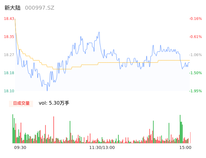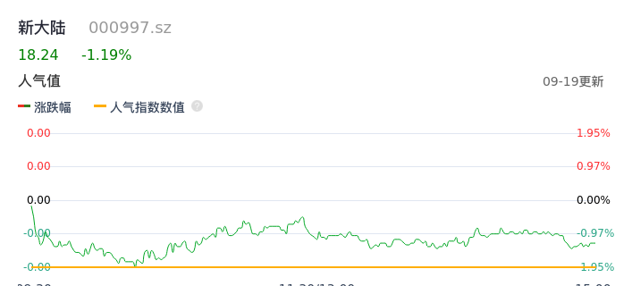 09月19日,新大陆收报18.24,股价涨幅-1.19%,成交金额9671.52万元,换手率0.52%。