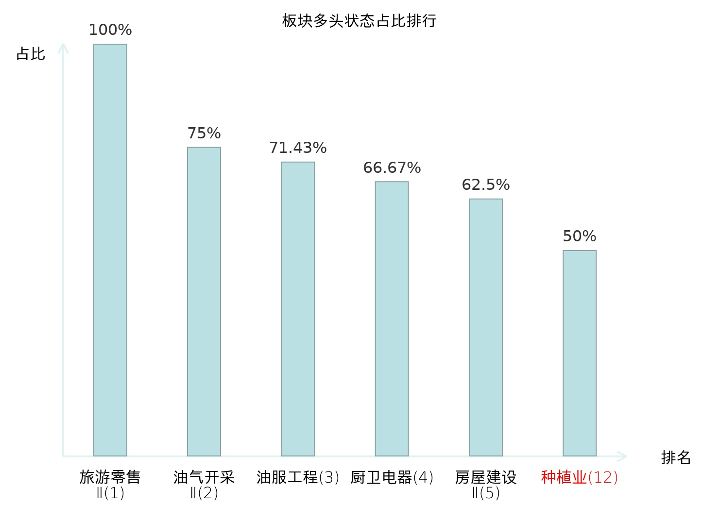 全市场所有行业板块中主力多头状态占比排名中,旅游零售Ⅱ板块位居第一。焦炭Ⅱ板块名次提升最快,较昨日上升58位。