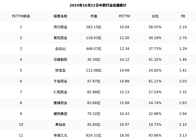 从估值角度看:华润三九最新市盈率PETTM为18.50,在行业内排名11/70,处于93.66分位。