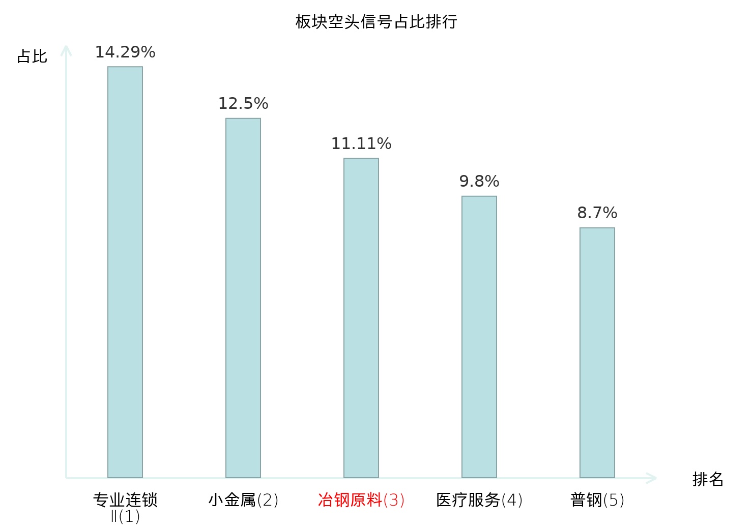 全市场所有行业板块中主力空头信号占比排名中,专业连锁Ⅱ板块位居第一。军工电子Ⅱ板块名次提升最快,较昨日上升106位。