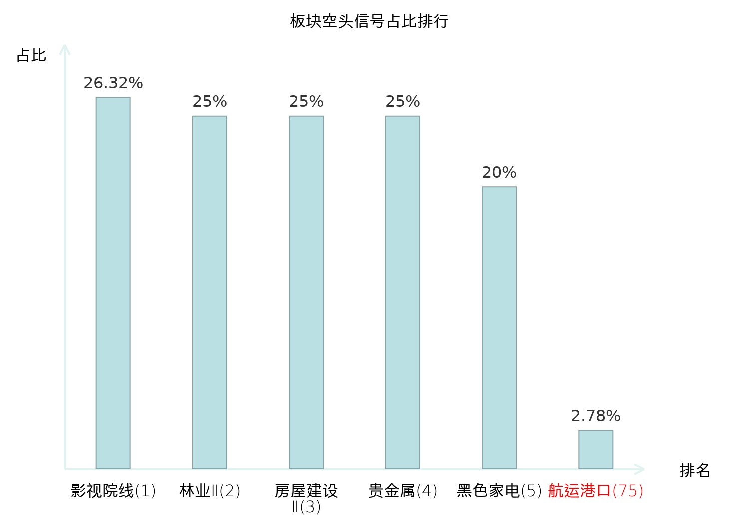 全市场所有行业板块中主力空头信号占比排名中,影视院线板块位居第一。普钢板块名次提升最快,较昨日上升115位。