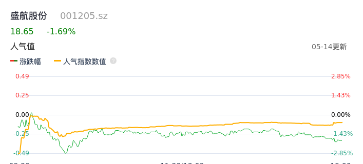 05月14日,盛航股份收报18.65,股价涨幅-1.69%,成交金额6404.14万元,换手率2.92%。