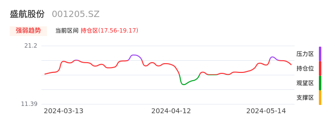 我们来看一下该股的九方特色指标强弱趋势的情况:盛航股份近日从压力区回到持仓区。股价快速拉升后出现持续调整。后续主要关注下方支撑位:17.56元是否能启稳回升。