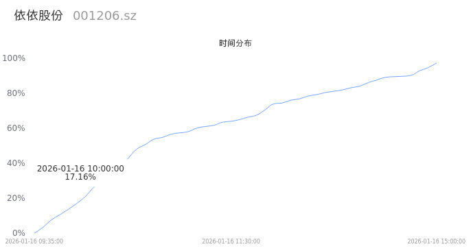 001206依依股份2026年01月16日成交3.24万手,成交金额9117.37万,相较昨日放量6813手,换手率3.04%,成交清淡。