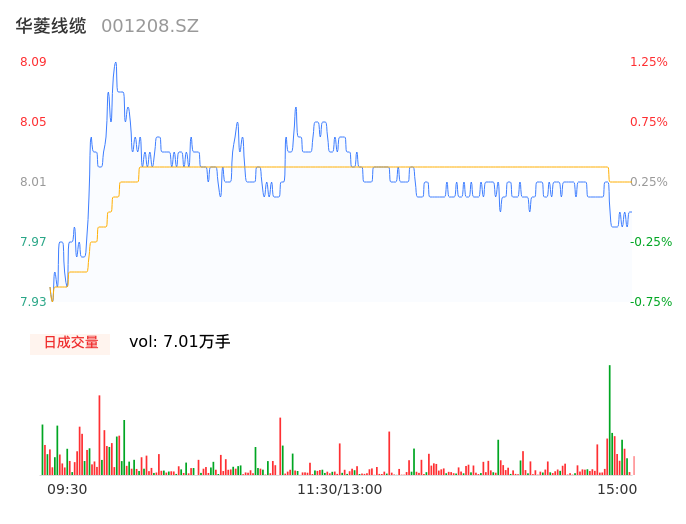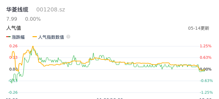 05月14日,华菱线缆收报7.99,股价涨幅0.00%,成交金额5619.54万元,换手率2.83%。