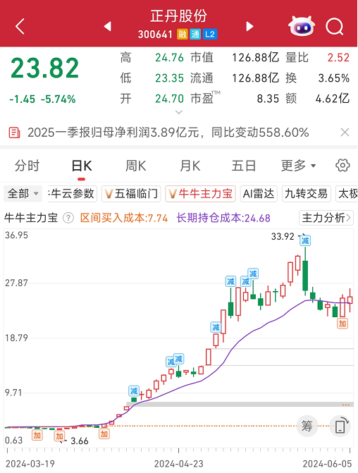 同时,正丹股份的24年净利润也暴增119倍,股价更是翻了10倍,成为24年第一支10倍股。