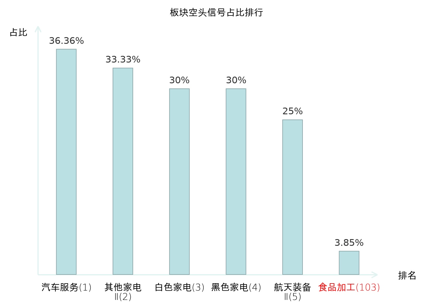 全市场所有行业板块中主力空头信号占比排名中,汽车服务板块位居第一。汽车服务板块名次提升最快,较昨日上升115位。