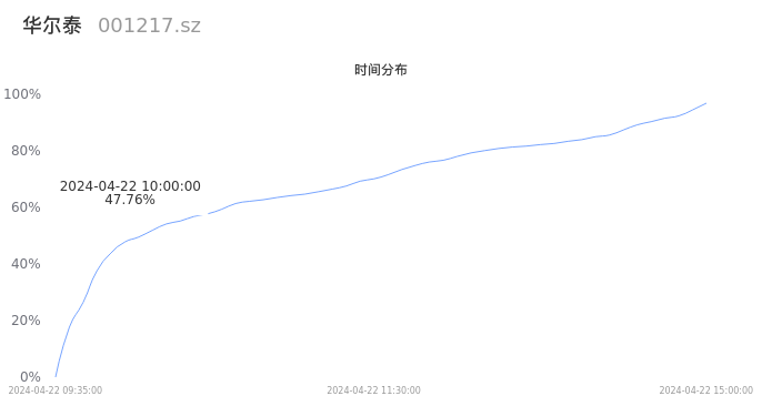 001217华尔泰2024年04月22日成交8.44万手,成交金额8472.06万元,相较昨日缩量2.25万手,换手率6.35%,成交清淡。