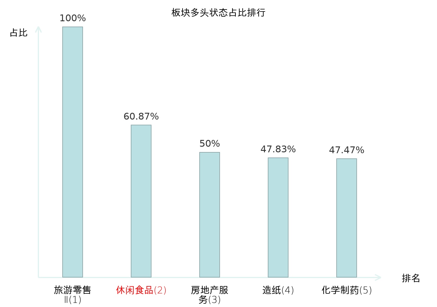 全市场所有行业板块中主力多头状态占比排名中,旅游零售Ⅱ板块位居第一。种植业板块名次提升最快,较昨日上升49位。