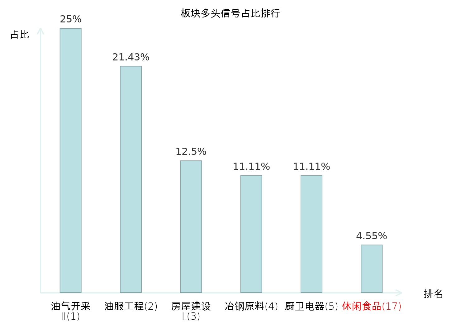 全市场所有行业板块中主力多头信号占比排名中,油气开采Ⅱ板块位居第一。油气开采Ⅱ板块名次提升最快,较昨日上升125位。