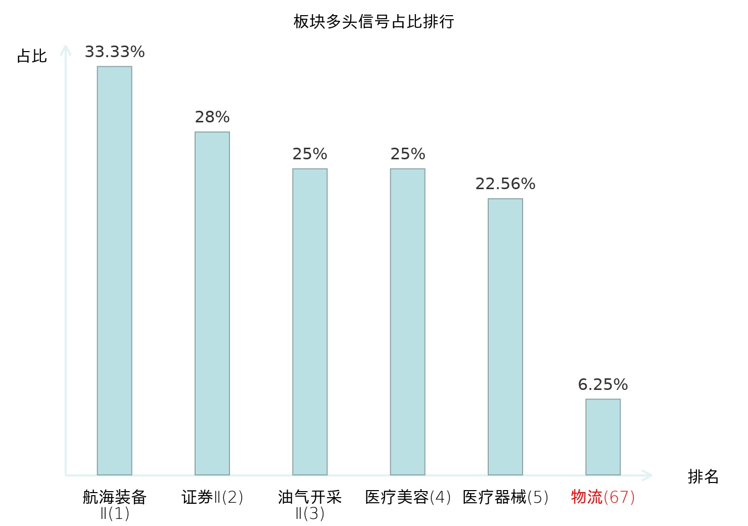 全市场所有行业板块中主力多头信号占比排名中,航海装备Ⅱ板块位居第一。油气开采Ⅱ板块名次提升最快,较昨日上升123位。