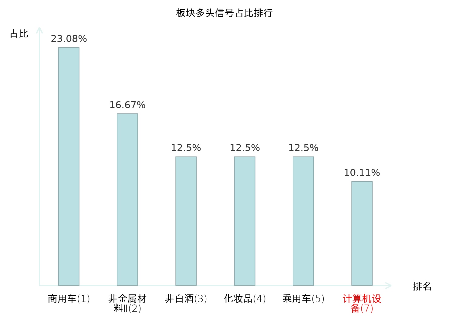 从主力宝信号数据分析,魅视科技所属的计算机设备板块中共有9只股票发出主力多头信号,主力多头信号占比在全行业中排名第7位,较昨日上升了34位。排名的大幅提升表明主力对计算机设备行业的买入意愿显著增强。全市场所有行业板块中,商用车板块的主力多头信号占比最高,位居第一。商用车板块名次提升最快,较昨日上升106位。这些变化反映了主力资金在不同行业间的偏好调整,为投资者提供了关于市场趋势的重要参考。