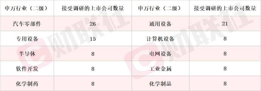 细分领域看,汽车零部件、通用设备和专用设备板块位列机构关注度前三名。此外,半导体、电网设备等行业机构关注度有所提升。