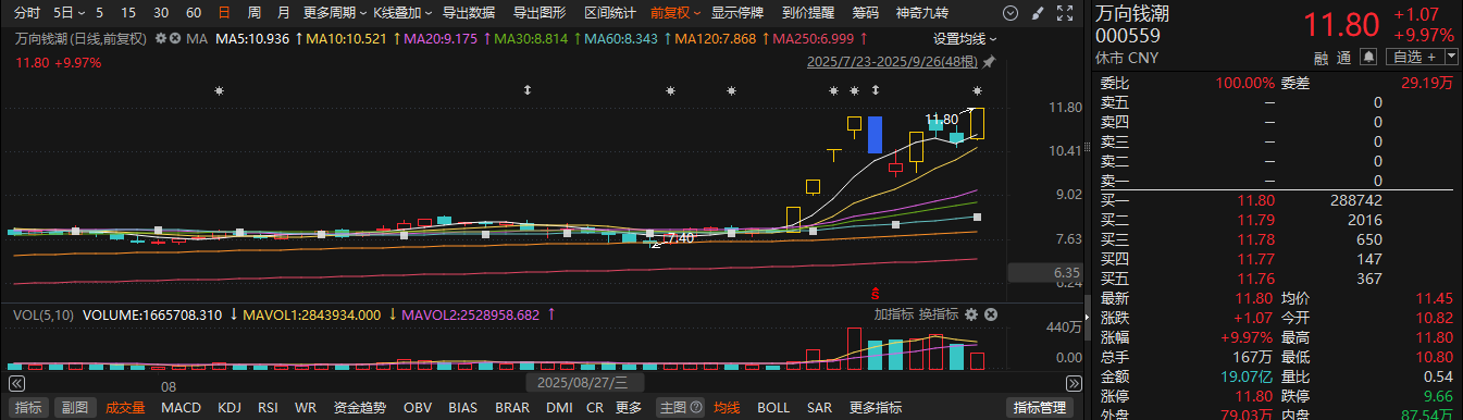 二级市场上,万向钱潮周五收盘涨停,斩获10天6板。
