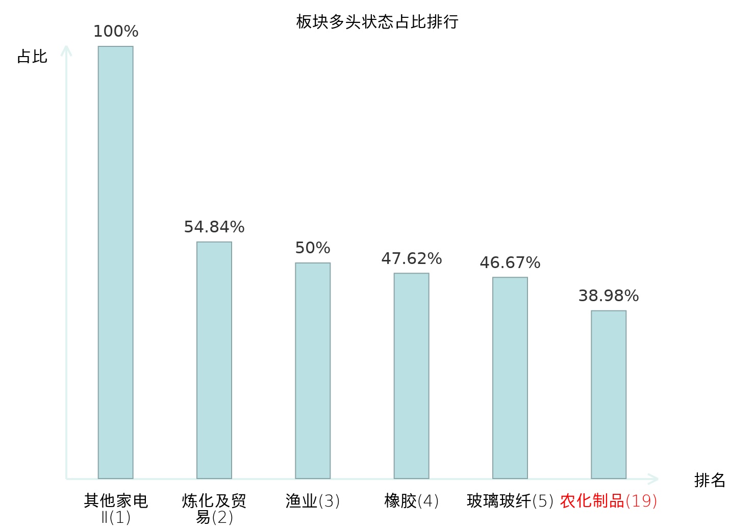 全市场所有行业板块中主力多头状态占比排名中,其他家电Ⅱ板块位居第一。铁路公路板块名次提升最快,较昨日上升37位。