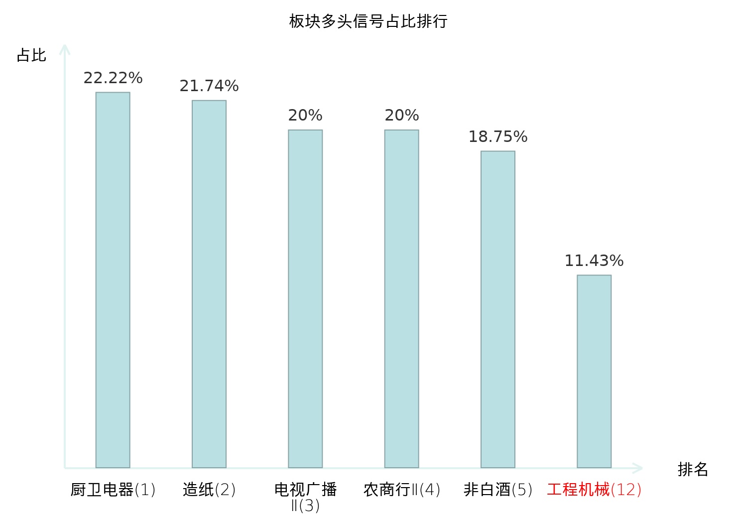 全市场所有行业板块中主力多头信号占比排名中,厨卫电器板块位居第一。厨卫电器板块名次提升最快,较昨日上升115位。
