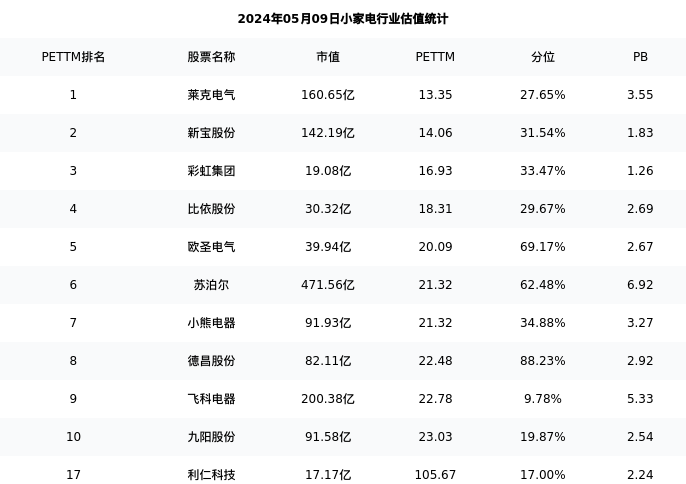 从估值角度看:利仁科技最新市盈率PETTM为105.67,在行业内排名17/20,处于17.00分位。