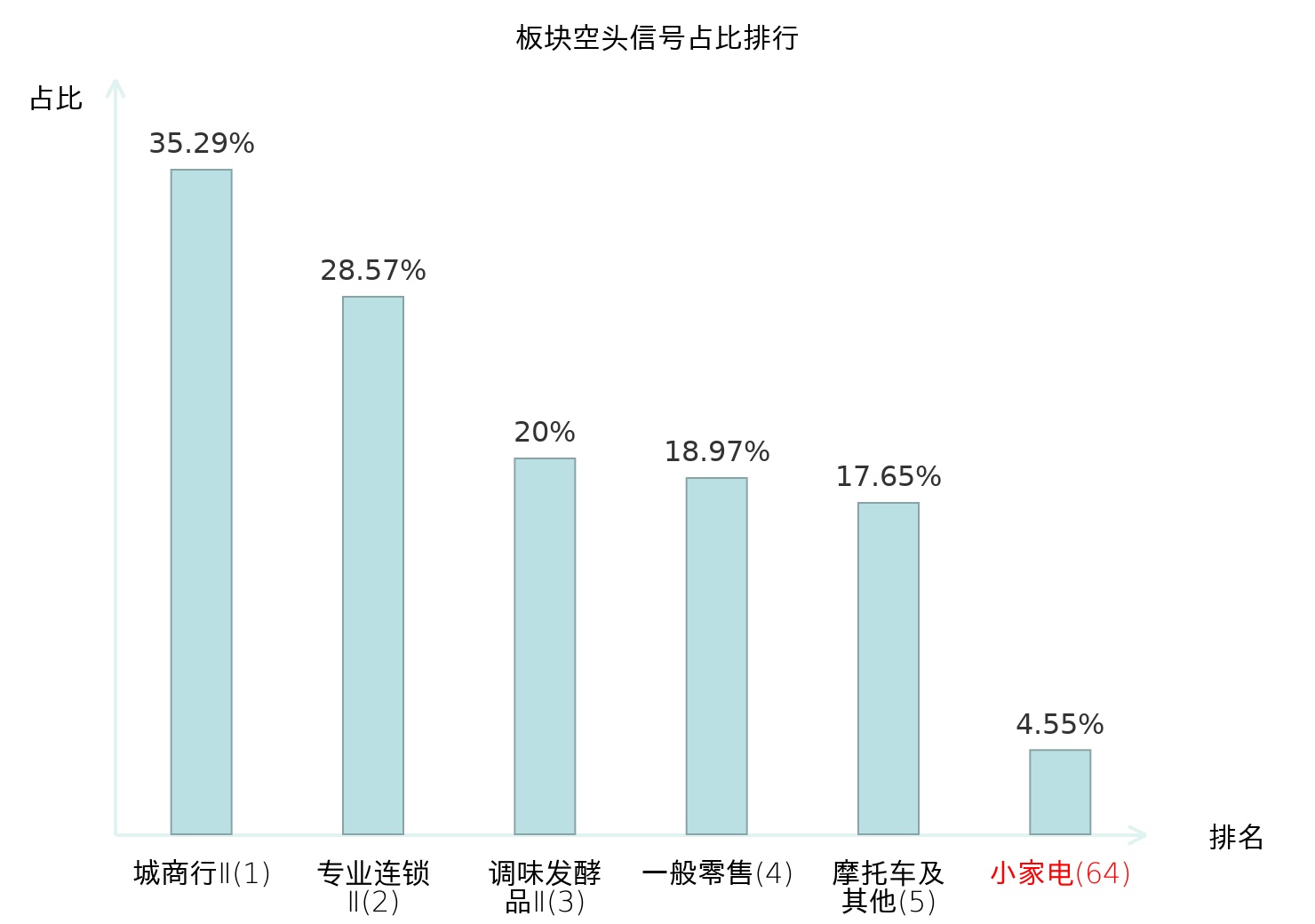 全市场所有行业板块中主力空头信号占比排名中,城商行Ⅱ板块位居第一。炼化及贸易板块名次提升最快,较昨日上升96位。