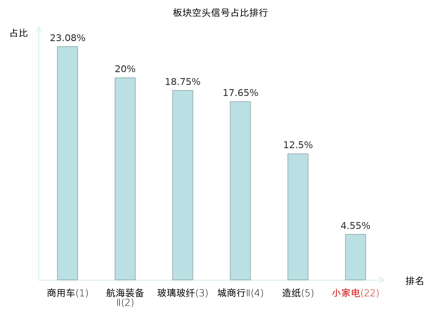 全市场所有行业板块中主力空头信号占比排名中,商用车板块位居第一。通信服务板块名次提升最快,较昨日上升107位。