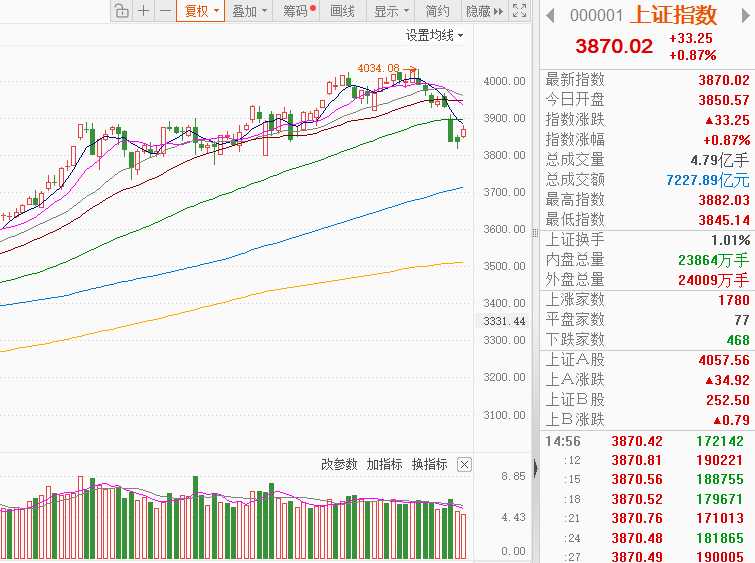 大盘分析及后市展望:经历昨日的探底回升之后,A股市场今日以高开高走的姿态迎来全线反攻,三大指数集体跳空放量上行,展现出短期强劲的修复动能。在经历了此前一轮快速而急促的下跌之后,市场终于迎来了企稳回升的曙光。热点方面,开盘后,中船系、养殖业等前期强势板块补跌。游戏、影视院线、教育、SOra概念、快手概念、短剧概念等AI应用板块继续拉升。算力硬件展开反弹,PCB概念、CPO概念、F5G概念、光纤概念、铜缆高速链接等板块集体拉升,创业板指涨超2%。午后,半导体、通信设备涨幅收窄,中船系、锂矿、有色金属、锂电池、游戏、海南板块等拉升明显,福建板块掀起涨停潮;股指延续震荡态势,上涨个股超4300只。