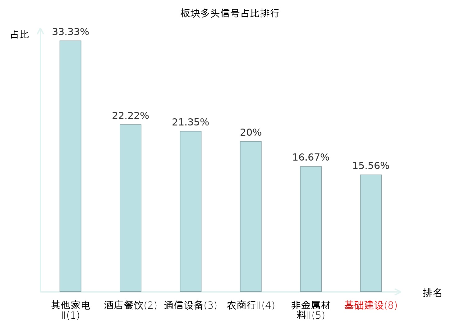 从主力宝信号数据分析,汇绿生态所属的基础建设板块中共7只股票发出主力多头信号,主力多头信号占比在全行业中排名第8位,较昨日上升57位。较高的排名表明主力对于该板块整体看多意愿较强,此次排名的显著上升可能反映了主力对该板块态度的积极调整。全市场所有行业板块中主力多头信号占比排名中,其他家电Ⅱ板块位居第一;其他家电Ⅱ板块名次提升最快,较昨日上升128位。这些变动揭示了不同行业间主力资金动向的结构性变化,为投资者评估板块相对强度及潜在趋势提供了客观依据。