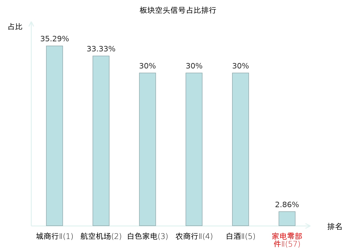 全市场所有行业板块中主力空头信号占比排名中,城商行Ⅱ板块位居第一。饮料乳品板块名次提升最快,较昨日上升106位。