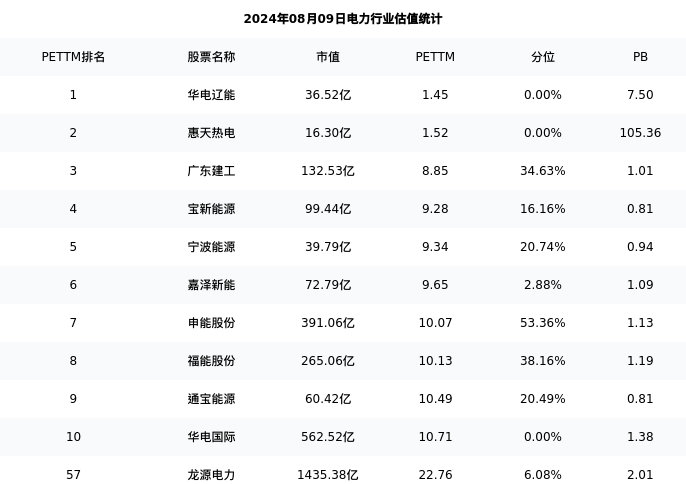 从估值角度看:龙源电力最新市盈率PETTM为22.76,在行业内排名57/102,处于6.08分位。