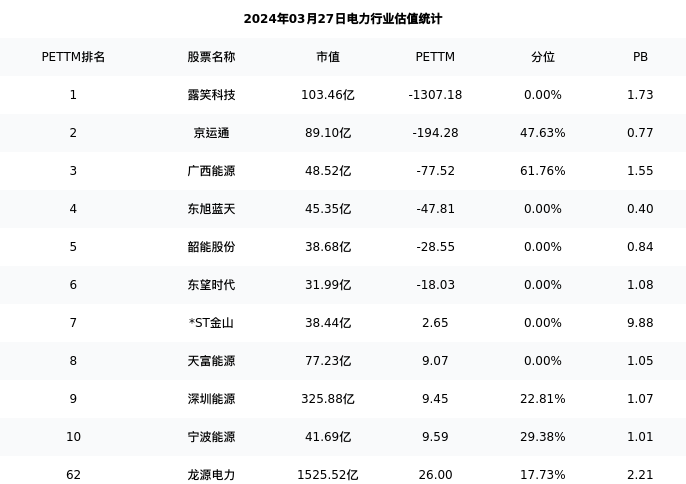 从估值角度看:龙源电力最新市盈率PETTM为26.00,在行业内排名57/98,处于17.73分位。