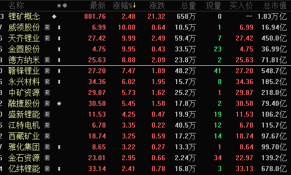 锂电池相关板块大幅上涨