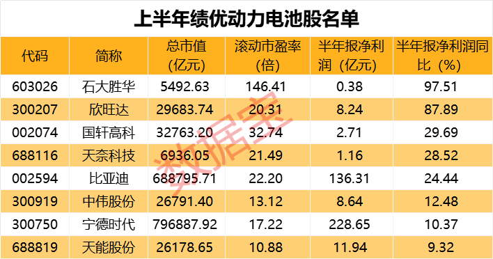 业绩表现方面,动力电池概念股整体业绩分化明显,上半年石大胜华、欣旺达、国轩高科、比亚迪等8股依旧保持业绩稳定增长。