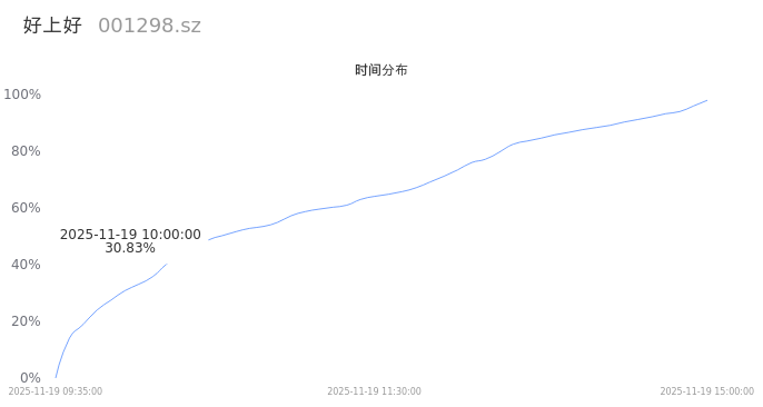 001298好上好2025年11月19日成交26.43万手,成交金额9.39亿,相较昨日缩量9.23万手,换手率16.05%,成交活跃。