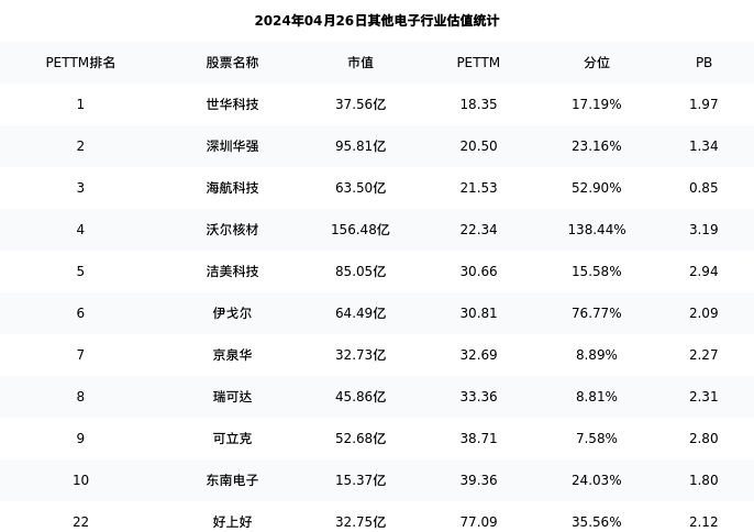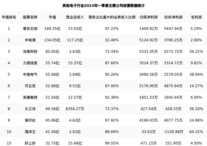 好上好最新报告期数据为一季度,下表汇总了其他电子行业内市值靠前的公司一季度主要经营数据