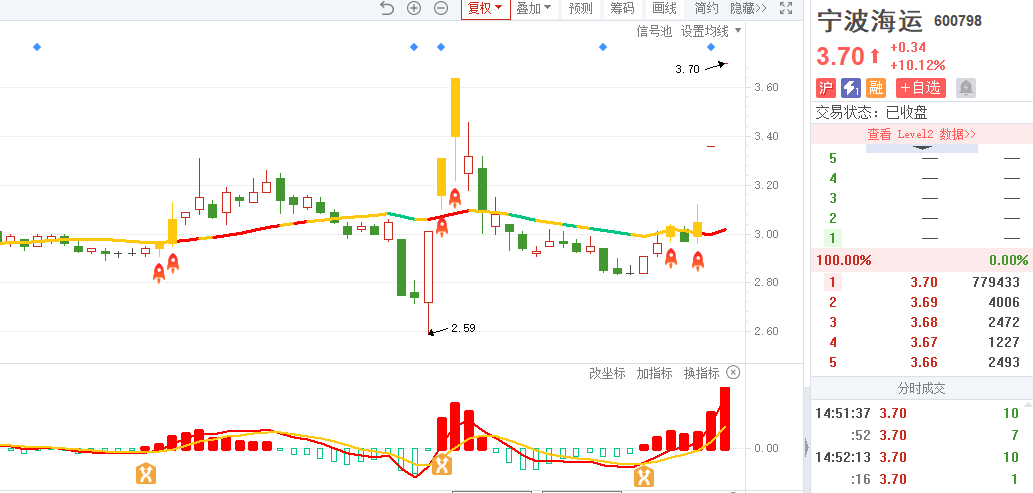 1)宁波海运-四维操盘-近期出现火箭信号且底部量柱由绿转红