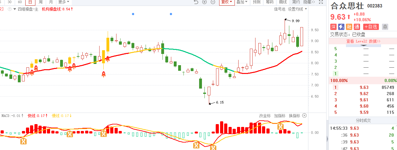 2)合众思壮-四维操盘-近期出现火箭信号且底部量柱由绿转红