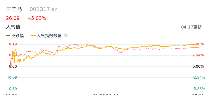 04月17日,三羊马收报26.09,股价涨幅5.03%,成交金额4670.57万元,换手率6.17%。