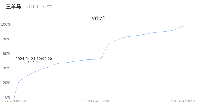 根据成交分布分析,该股票当天放量成交,成交清淡。时间上看,早盘前半小时成交量占据当天总成交量的33.42%;价格上看,成交呈现中间峰。成交分布分析主要研究股票成交的分布特性,不具有预测功能,请知悉。