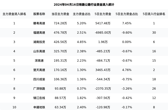 从主力资金流向来看,铁路公路行业今日主力资金流入16.97亿元,在所有申万二级行业中排名:70/131。