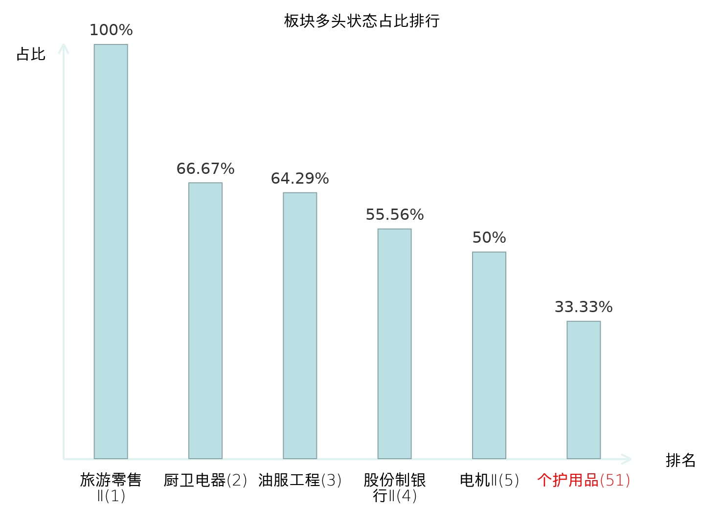 全市场所有行业板块中主力多头状态占比排名中,旅游零售Ⅱ板块位居第一。航海装备Ⅱ板块名次提升最快,较昨日上升78位。