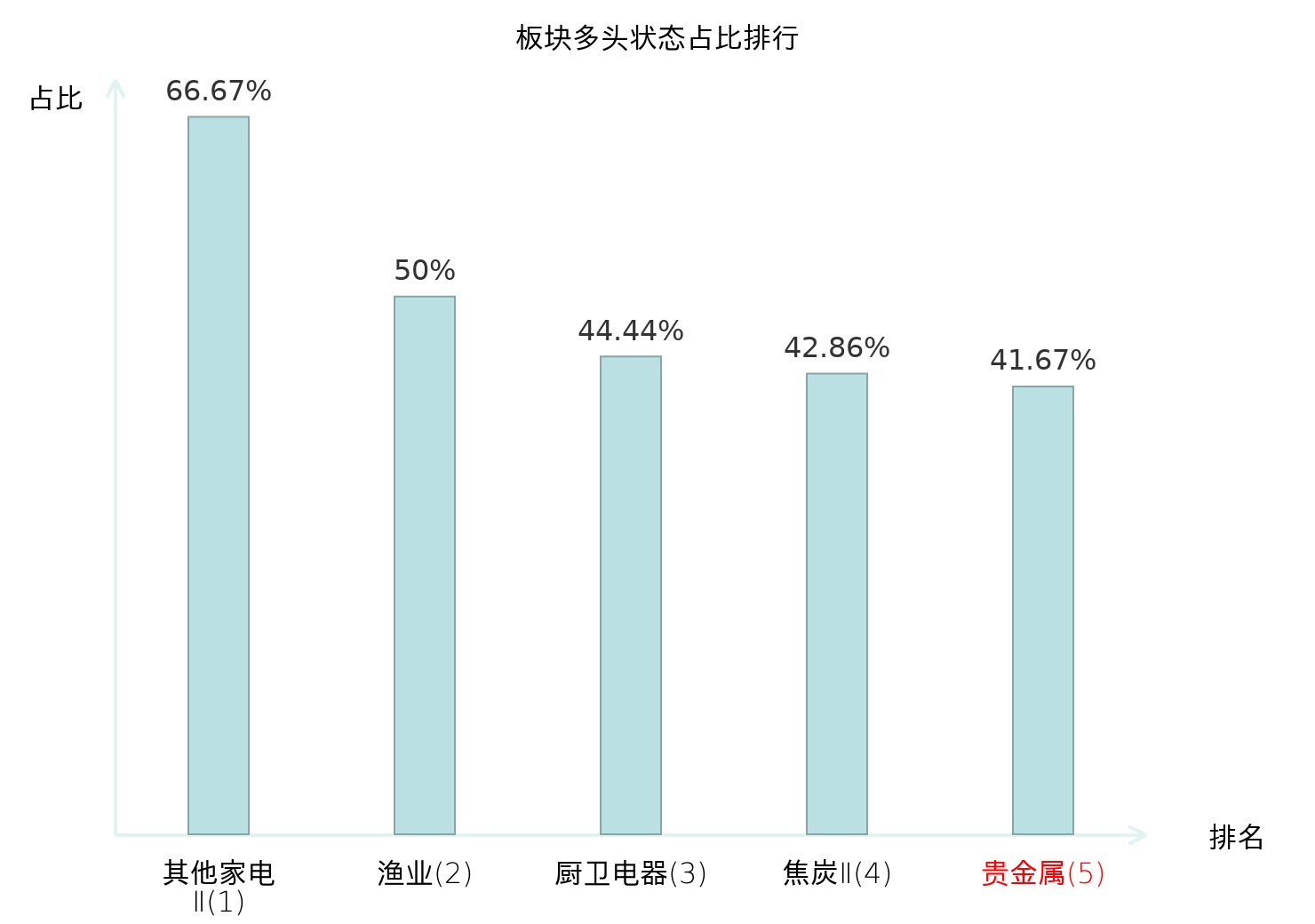从主力宝信号数据分析,四川黄金所属的贵金属板块中共有5只股票处于主力多头状态,主力多头状态占比在全行业中排名第5位,较昨日上升17位。这一排名的提升表明主力对贵金属板块的看多意愿增强。全市场所有行业板块中,其他家电Ⅱ板块的主力多头状态占比最高,位居第一;乘用车板块名次提升最快,较昨日上升82位。这些变动反映了主力资金在不同行业间的偏好调整,为投资者提供了市场动态和潜在投资机会的重要线索。