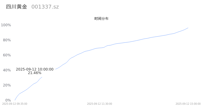 001337四川黄金2025年09月12日成交25.96万手,成交金额7.40亿,相较昨日放量2.12万手,换手率9.00%,成交清淡。
