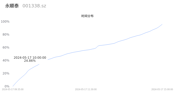 001338永顺泰2024年05月17日成交7.81万手,成交金额9087.30万元,相较昨日缩量1261手,换手率3.31%,成交清淡。