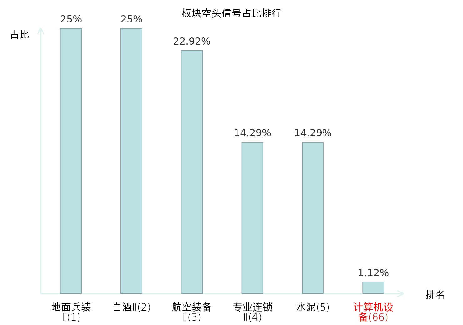 全市场所有行业板块中主力空头信号占比排名中,地面兵装Ⅱ板块位居第一。航空装备Ⅱ板块名次提升最快,较昨日上升115位。